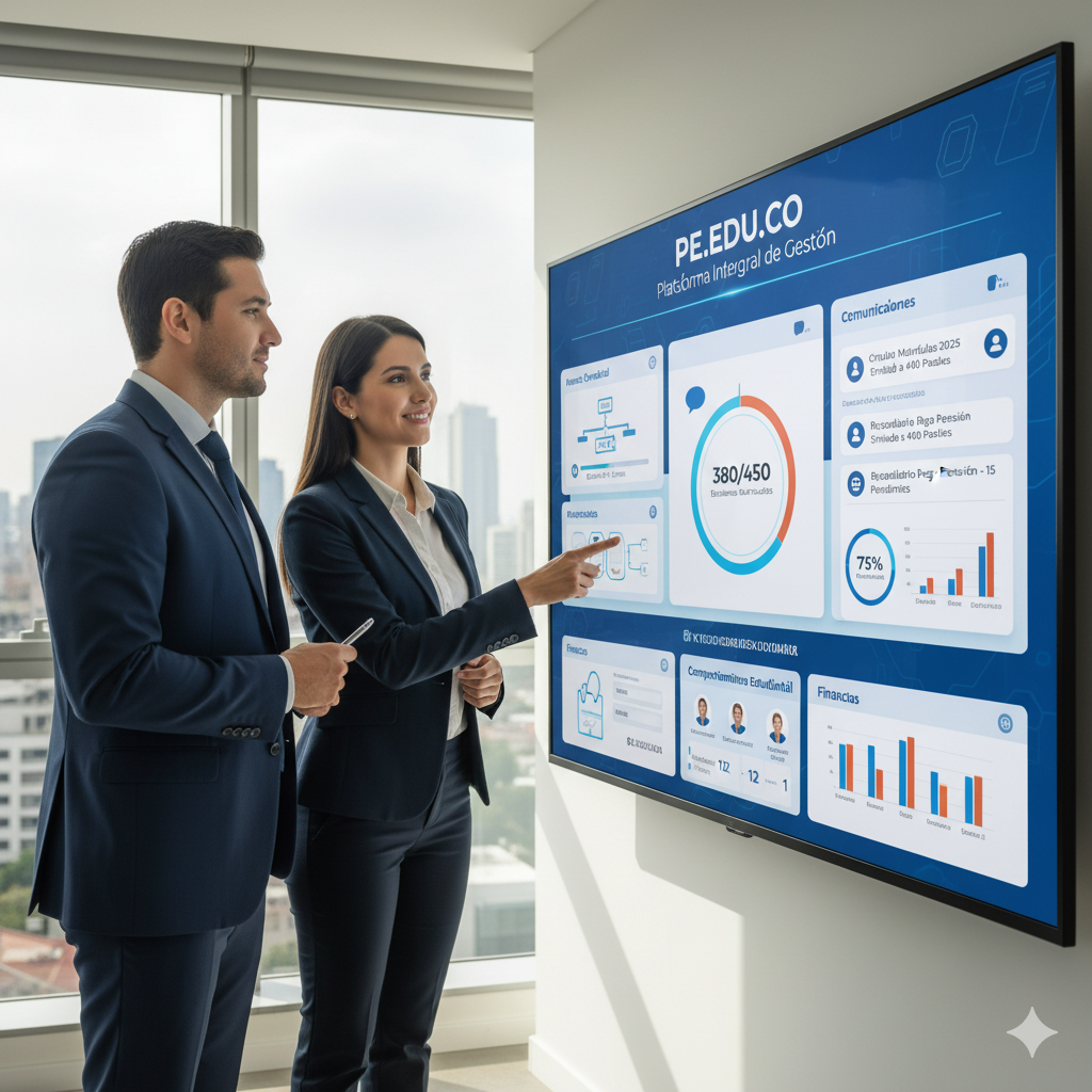 | Exploramos el costo oculto de los “silos de información” en la gestión de colegios. Una plataforma integral como pe.edu.co no solo almacena datos; los conecta. No solo permite gestionar los procesos los conecta en una sola plataforma , los académicos y los administrativos. Esto proporciona al coordinador académico una vista 360° del desempeño del estudiante en tiempo real, y al rector de una vista 360º de todo el colegio; un imperativo para la calidad que exige el segmento de la educación. Unidad en la excelencia educativa y la administrativa Es el cerebro digital que unifica la excelencia educativa con la eficiencia administrativa, permitiendo a los líderes del colegio enfocarse en la Calidad, no en la Consolidación. |